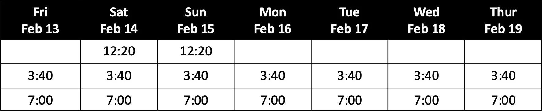 Showtimes February 13 - 19: