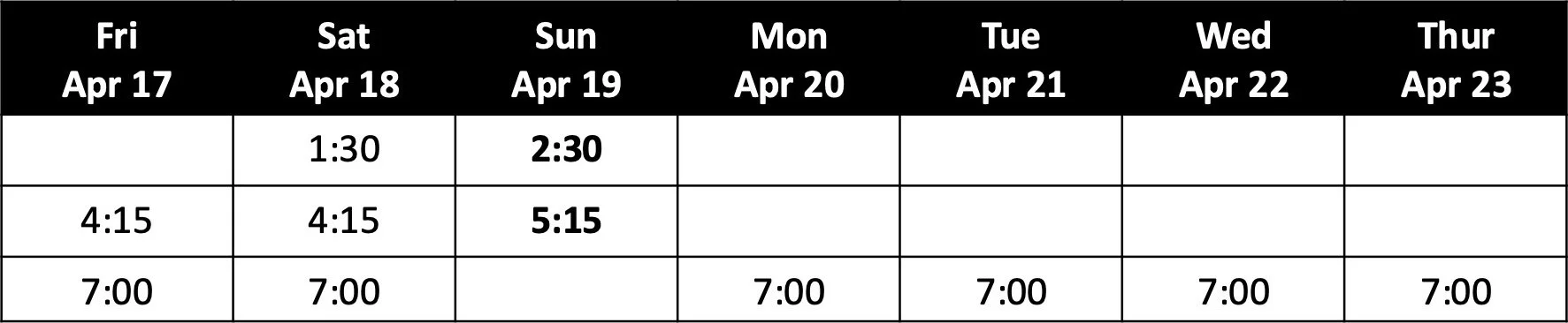 Showtimes April 17 - 23: