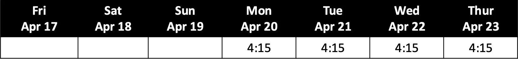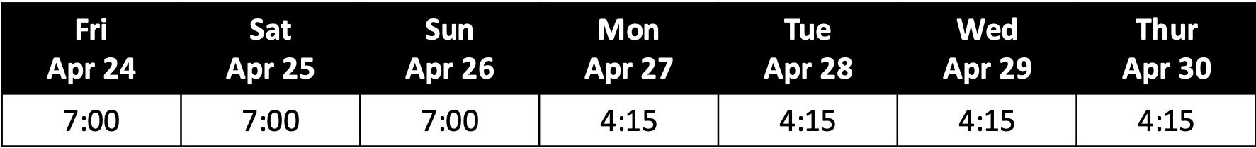 Showtimes April 20 - 23: